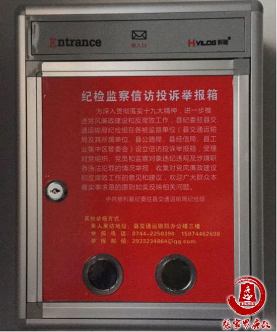 近日,慈利縣紀(jì)委駐縣交通運(yùn)輸局紀(jì)檢組在各被監(jiān)督單位設(shè)置信訪投訴舉報(bào)箱,暢通群眾訴求渠道,受理對(duì)黨組織、黨員和監(jiān)察對(duì)象違紀(jì)違規(guī)及涉嫌職務(wù)犯罪的情況舉報(bào),收集對(duì)黨風(fēng)廉政建設(shè)和反腐敗工作的意見(jiàn)和建議,織好了一張嚴(yán)密的“監(jiān)督網(wǎng)”。